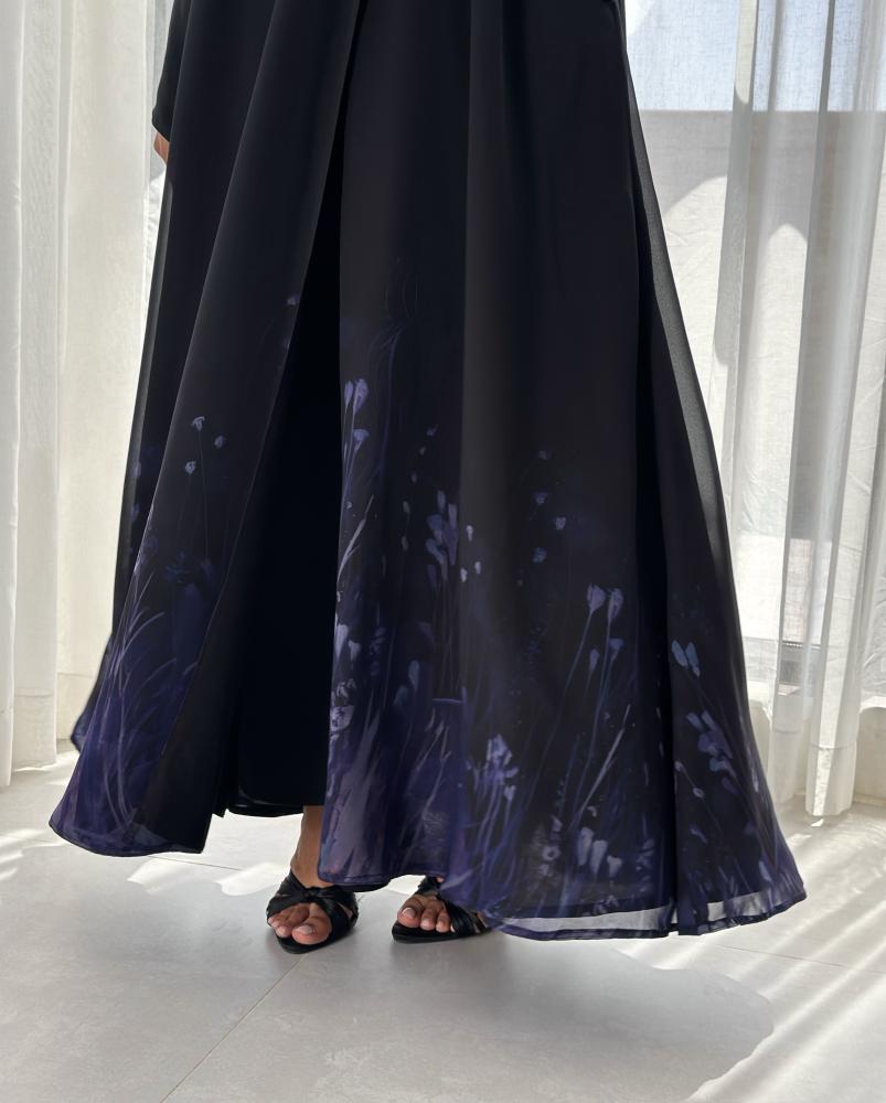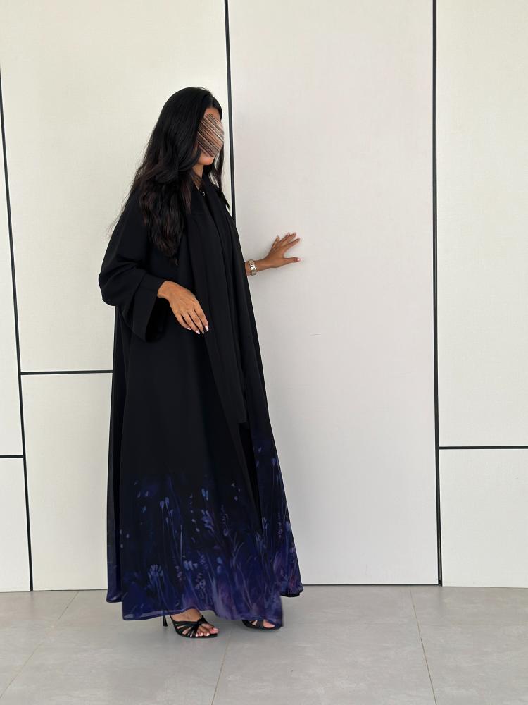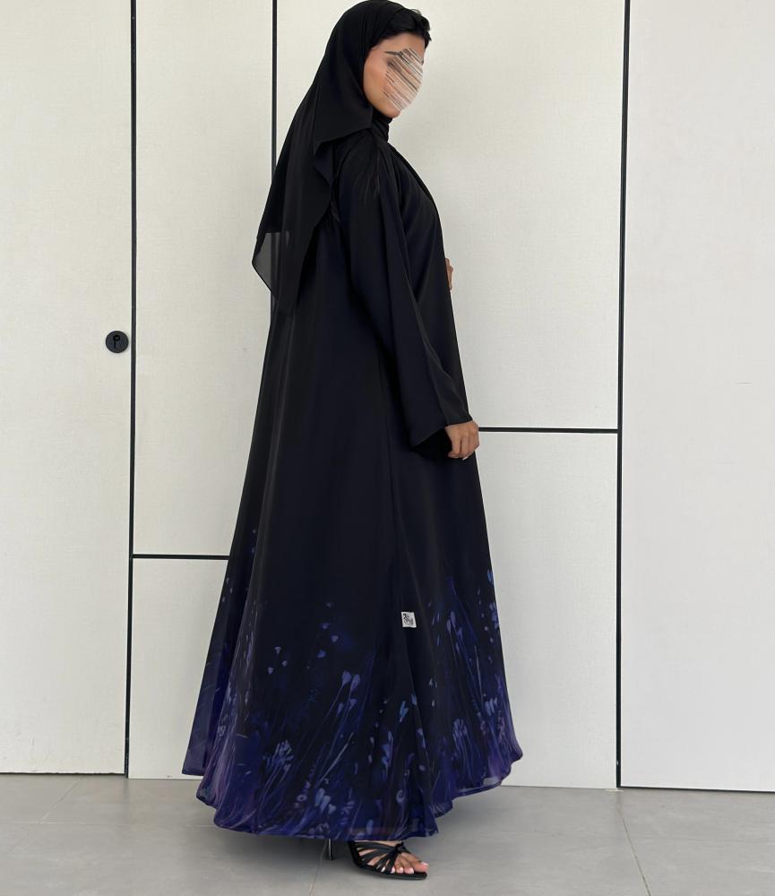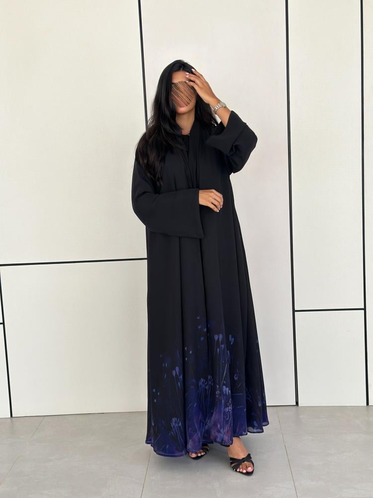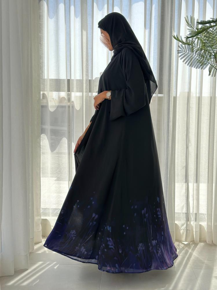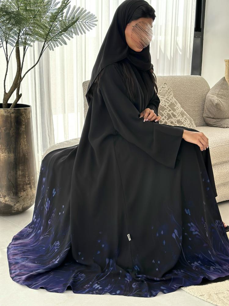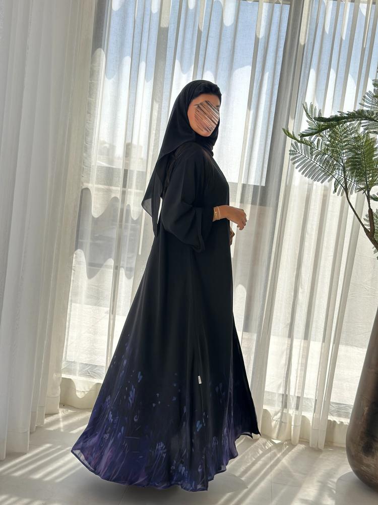 بطباعه اسفل العبايه باللون البنفسجي مبطنه بالاسود