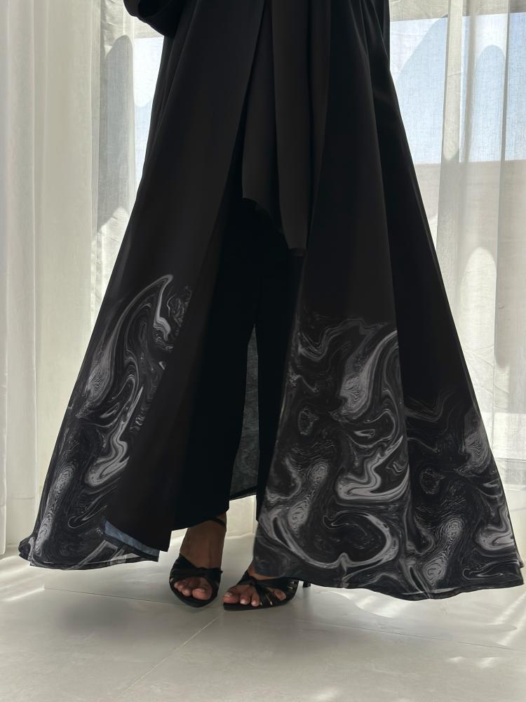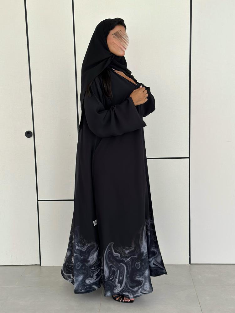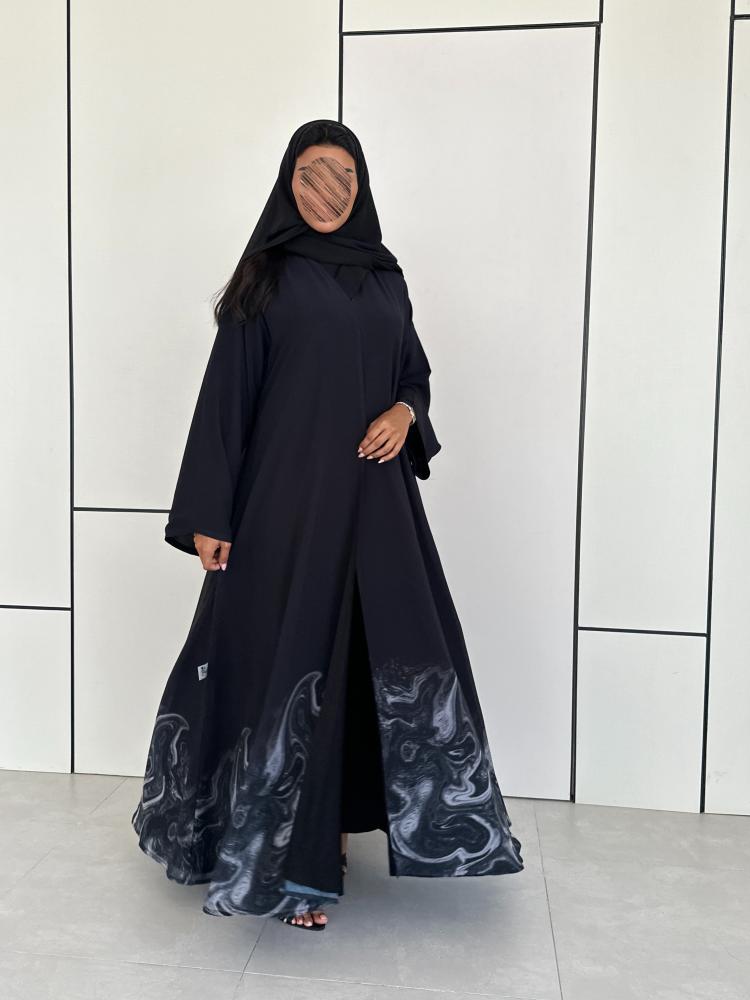 بطباعه اسفل العبايه باللون الرمادي مبطنه بالاسود