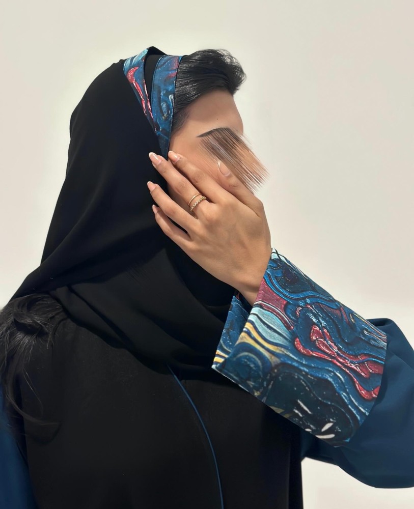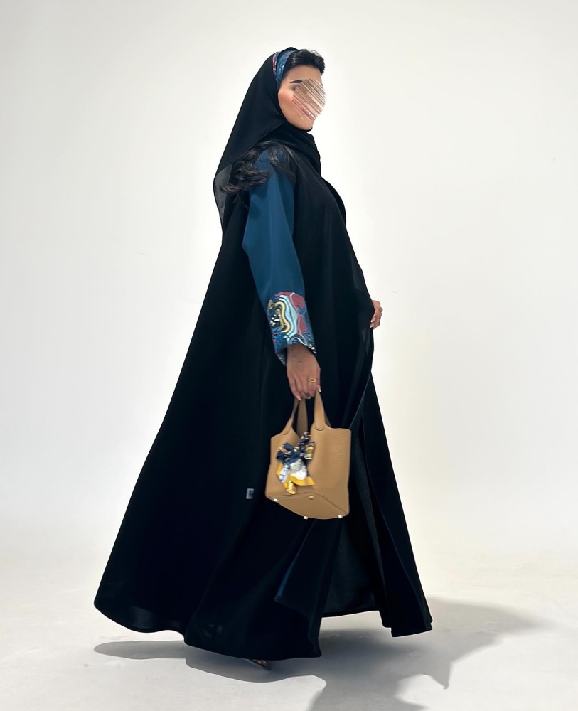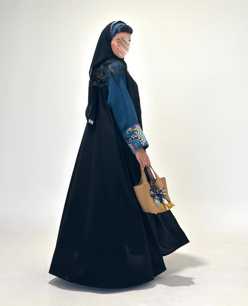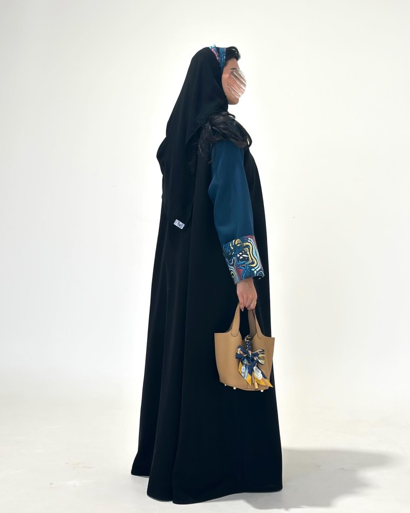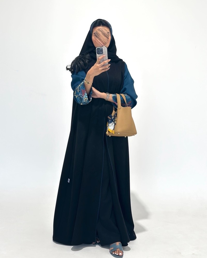 عبايات سوداءالقماش : كريب لمار واكمام تركواز مع قطن بودره مشجر